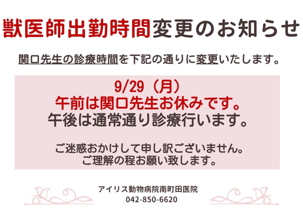 誠に勝手ながら、2025年9月29日の午前中は、関口先生の診療お休みに変更となります。
