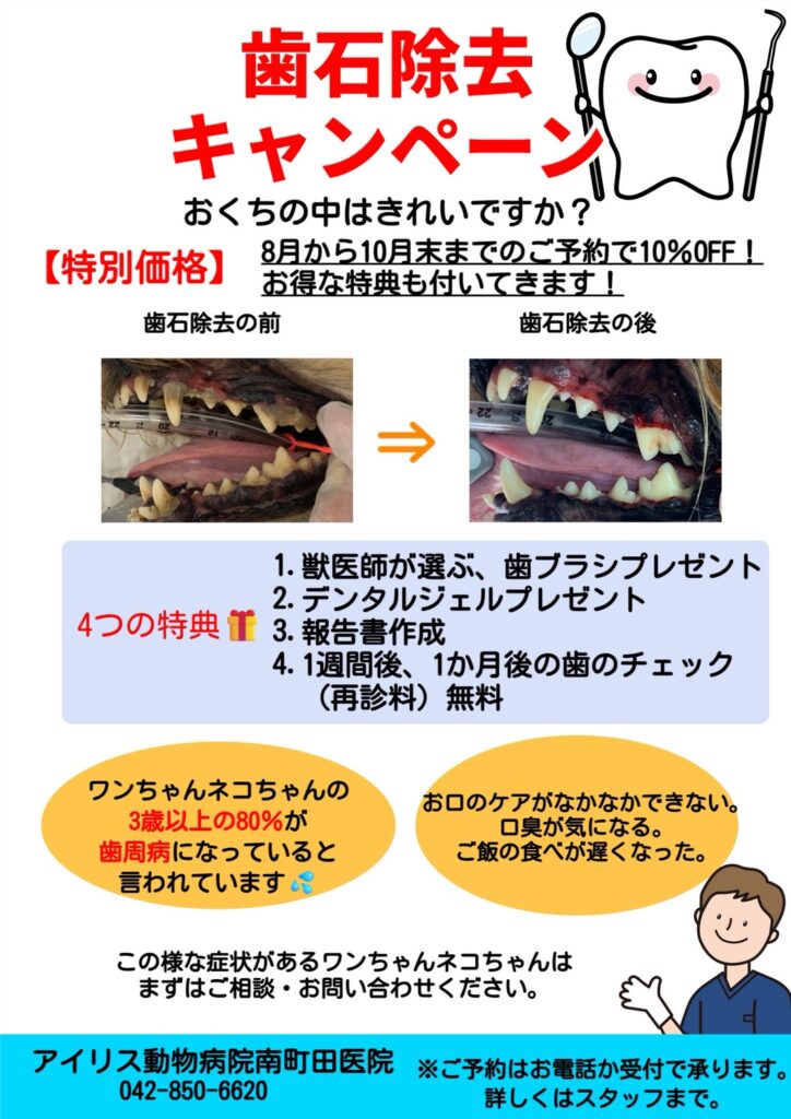 また、9月から引き続き10月まで歯石除去キャンペーンを開催しております。